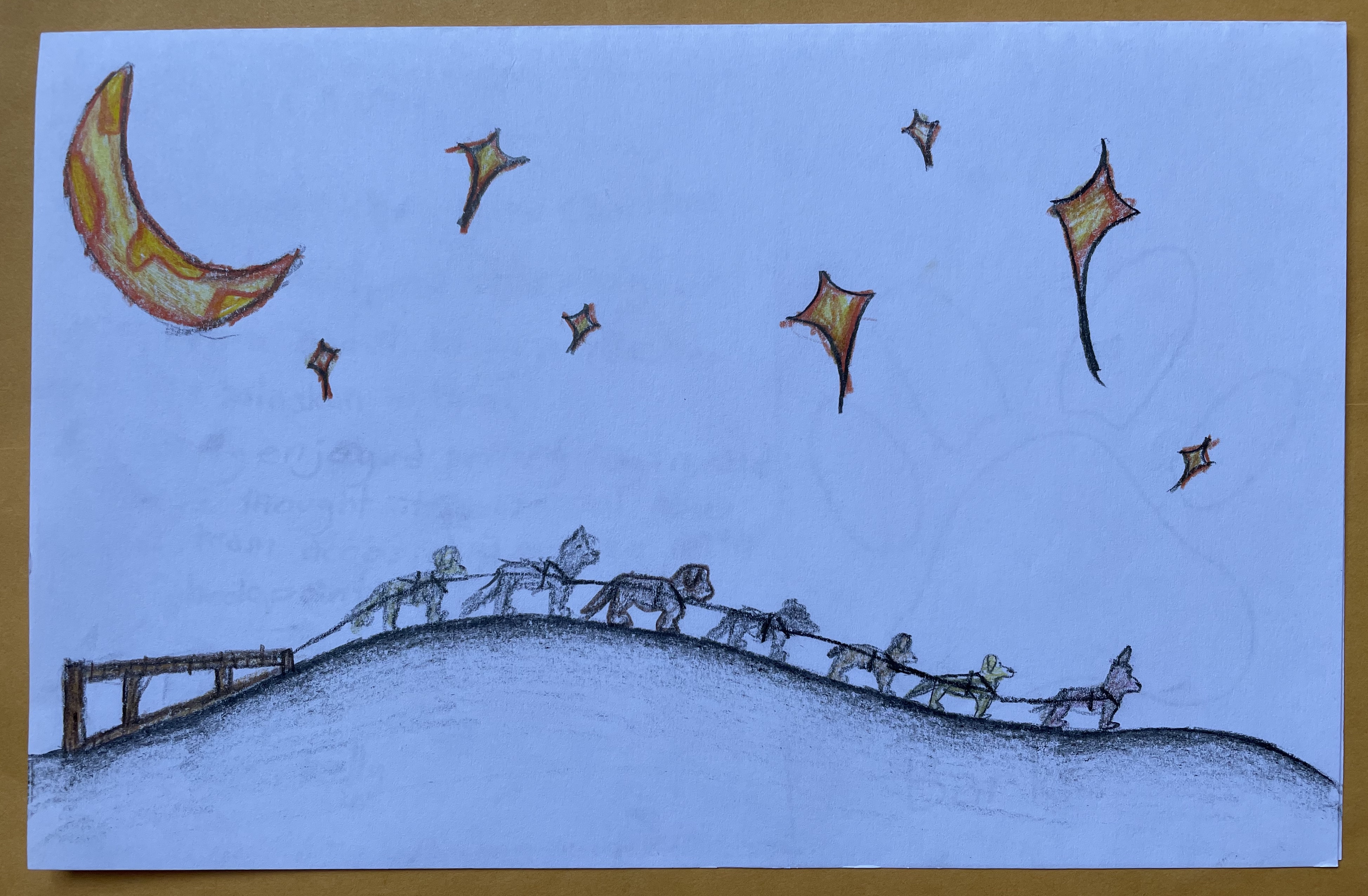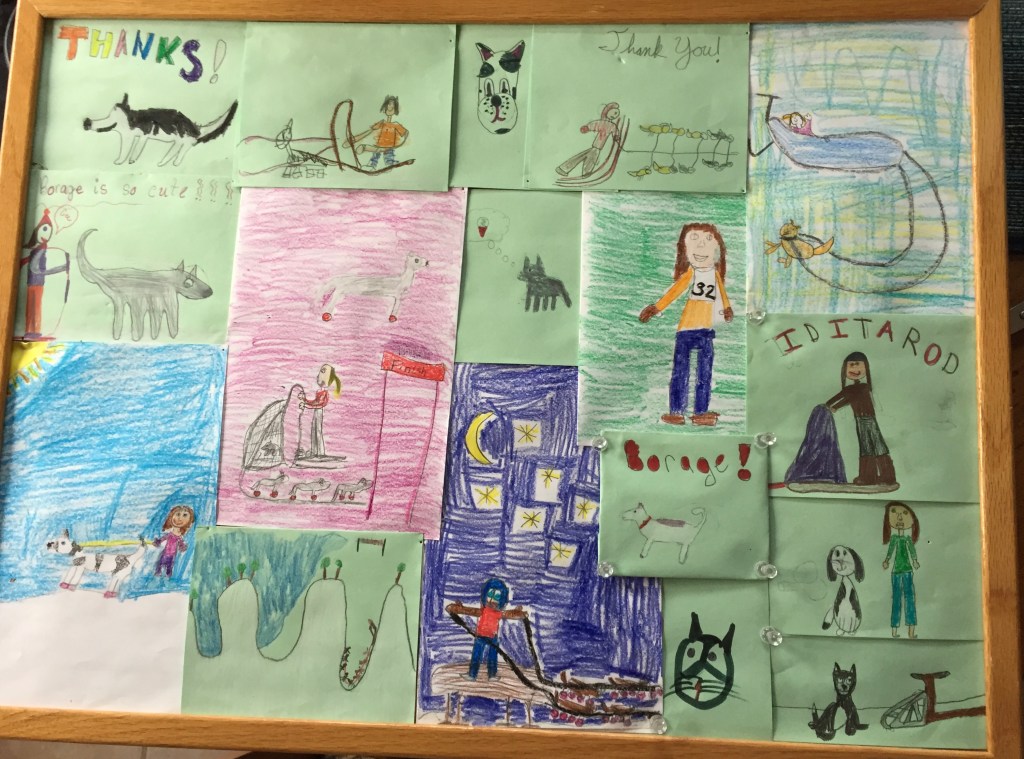 Get out your crayons and colored pencils, paper mache and clay, paints and brushes, or whichever mediums inspire YOU! Noggin and Karen are gearing up for “COLOR OUR WORLD—SUMMER READING 2025!” Email us today at mymusher@gmail.com to save a date (we’re also booking winter & spring school and public library talks). And while you’re enjoying a sample of amazing mushing artwork created by students and library patrons over the years, click on the PLAY button below the slideshow to listen to Noggin’s all-time favorite song—“Noggin, You’re the One!”—available on our new dog mushing album, TRAIL ANGELS.